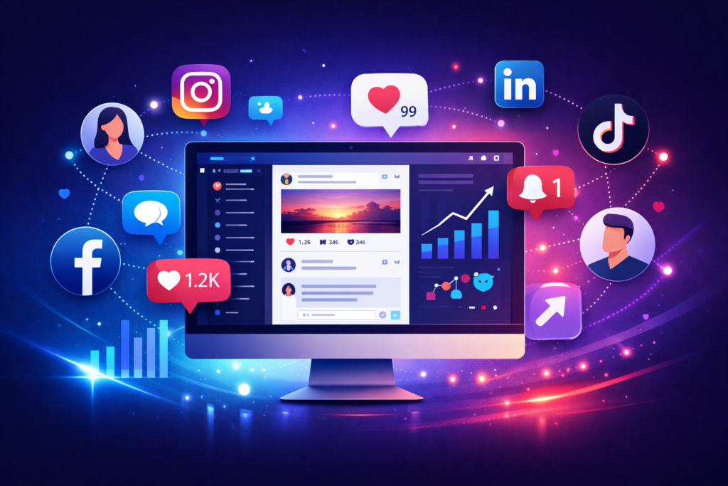 Nous accompagnons les marques et les entreprise dans la construction d’une présence digitale cohérente, créative et performante. De la définition de la ligne éditoriale à la production de contenus (visuels, vidéos, stories, reels), en passant par la planification et l’animation quotidienne des réseaux sociaux, nous créons des prises de parole qui reflètent l’identité de chaque client et parlent réellement à sa communauté.